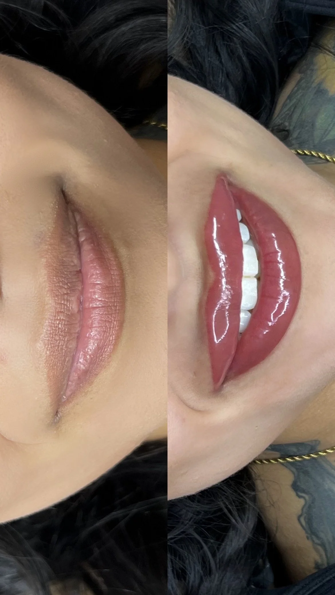 Lip blush is a semi-permanent tattoo that can enhance the color and shape of your lips and give the impression of more fullness. It also helps correct asymmetry and boosts lip collegen.